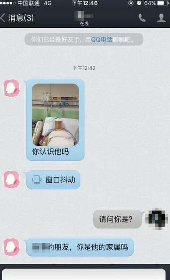 四川在线资阳站记者从截图上看到,对方用QQ添加了杨警官的一位朋友后,直接甩了一张“杨警官”躺在病床上微笑的照片给杨警官的朋友,并附上一句“你认识他吗?”,杨警官的朋友问:“请问你是?”对方回答:“杨×的朋友,你是他的家属吗?”杨警官的朋友故作惊讶的问:“是啊,他怎么了???”对方见鱼儿已上钩,便说:“三小时前,他跟我哥去参加派对,回来时出了事故,你的电话多少?我跟你电话说。”杨警官的朋友立刻问道:“你的银行卡号多少?我马上转钱给你!保大人!”朋友的一句“保大人”令杨警官哭笑不得。