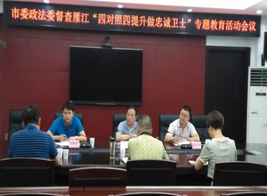 唐正雄副书记指出:开展“四对照四提升做忠诚卫士”专题教育,必须要抓好以下四个方面:一要抓领导,要把政治纪律和政治规矩摆在最重要位置,切实加强领导,加强思想建设,在教育活动中提升政治定力;二要抓细节,讲究活动方式方法,切实抓好每个单项活动,突出重点,打造特色亮点;三要抓结合,要紧密结合党委政府的中心工作,将专题教育活动与政法工作结合起来,让活动形式与实际工作相辅相成,真正做到能力提升;四要抓宣传,要形式多样,积极拓宽外宣渠道,提升雁江政法整体形象。