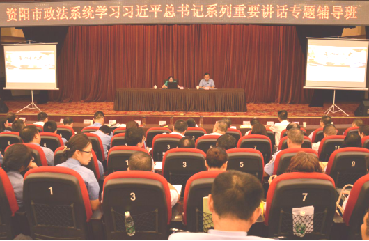 昨(4)日下午,资阳市举办了全市政法系统学习习近平总书记系列重要讲话专题辅导班。辅导班邀请到省委政法委政治部主任屈晓华做题为《深入学习贯彻习近平总书记系列重要讲话精神锻造过硬政法队伍》的专题辅导授课,此次学习由市委常委、政法委书记李丹主持。
