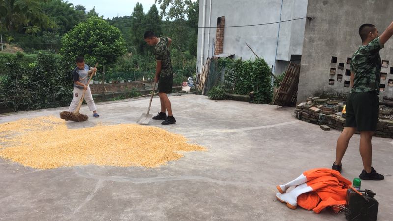 花山村7社的一户村民的家中二楼房檐上有一个硕大的马蜂窝,对村民人身安全构成了严重的威胁,根据现场情况消防官兵决定采取“袋套”的方式摘取蜂窝,计划制定好后,正要行动时,细心的消防官兵突然发现院落之中村民晾晒的玉米。