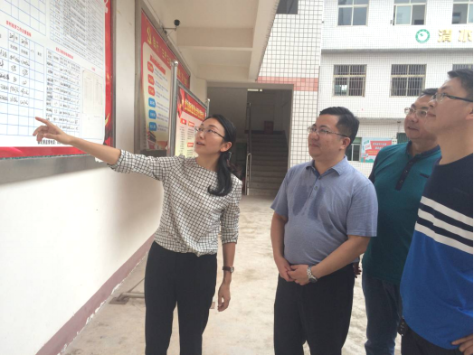 图为:依法治市办主任秦后权(右二)实地了解清水镇依法治理情况