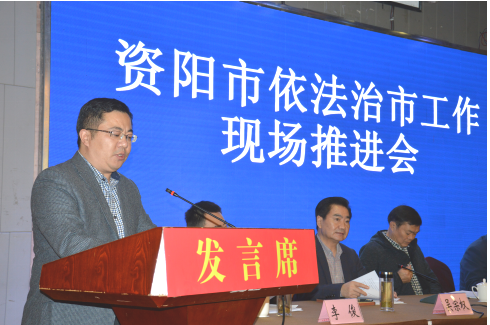 昨(26)日,记者在资阳依法治市现场会上获悉,为迅速学习贯彻党的十九大精神,全面落实全省依法治省工作推进会精神和市委工作会议部署要求,确保今年依法治市各项目标任务全面完成,持续推动依法治市深化提升,该市在安岳县召开全市依法治市工作现场推进会。市委副书记、市依法治市领导小组常务副组长段再青出席会议并作重要讲话,市委常委、政法委书记、市依法治市领导小组副组长李丹主持会议,市政府副市长、市公安局局长、市依法治市领导小组副组长吴宗权通报今年以来全市依法治市工作推进情况并安排下步工作,市依法治市领导小组副组长唐永良、雷明、张光禄、李俊出席会议。