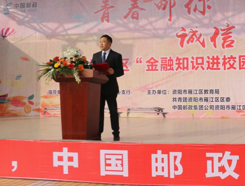 雁江邮政公司余强副总经理在启动仪式发表讲话