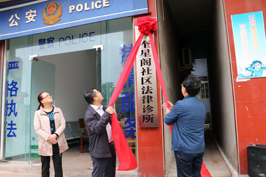 江应登和刘正华还共同为“安岳县法学会奎星阁社区法律诊所”揭牌。揭牌仪式结束后,有关领导现场观摩了奎星阁社区法律诊所、奎安社区法律诊所接诊情况。