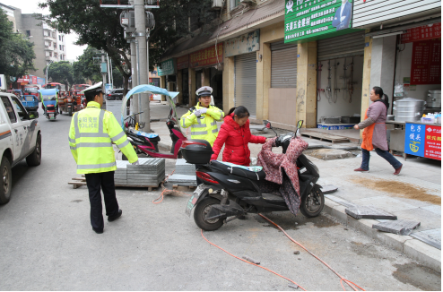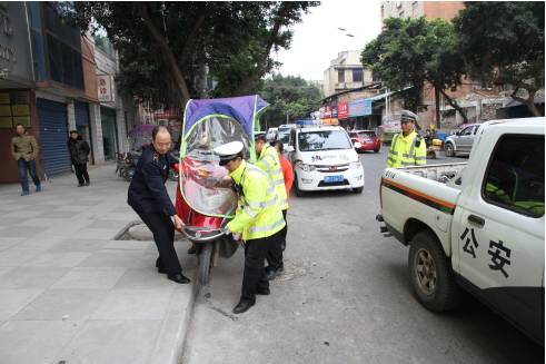资阳交警联合城管开展非机动车占道整治