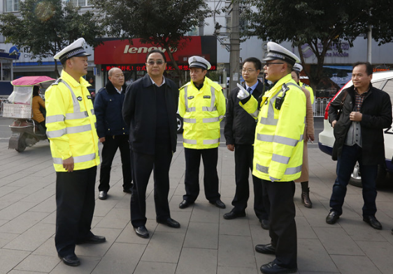 11月30日下午,资阳市政府副秘书长、整治办主任周俊率队对主城区道路交通综合整治工作推进情况进行现场督查。雁江区,宣传部、交通局、住建局、城市行政执法局、交警支队等单位负责人随同督查。