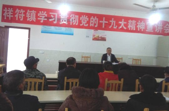 12月18日,记者在资阳市雁江区检察院获悉,该院党组书记、检察长雷毅一行三人在祥符镇党委副书记、镇长李金勇等祥符镇相关领导陪同下深入该镇二湾村宣讲党的十九大精神,二湾村社干部、全体党员和群众代表近100人参加。