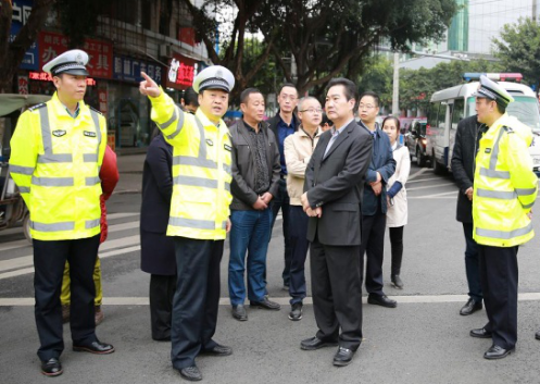 图为:吴宗权副市长(前排右二)带队调研主城区道路交通