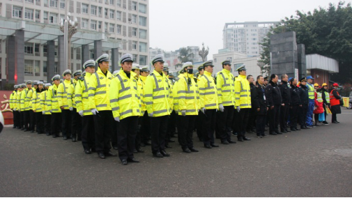 图为:各部门齐抓共管强化道路交通秩序管控