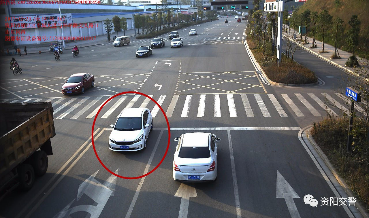 违法地点:雁江区车城大道与四海大道交叉口由北向南