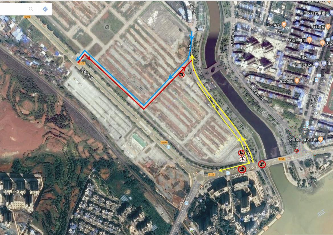 (二)原经滨河西路一段直行至江南半岛小区的车辆,请通过南骏老厂区便道前往江南半岛小区。