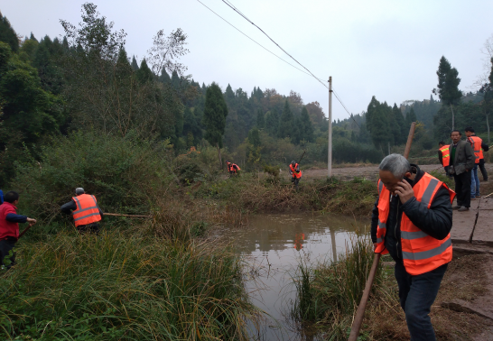 图为:海慧寺村“两委”开展河道清理义务劳动