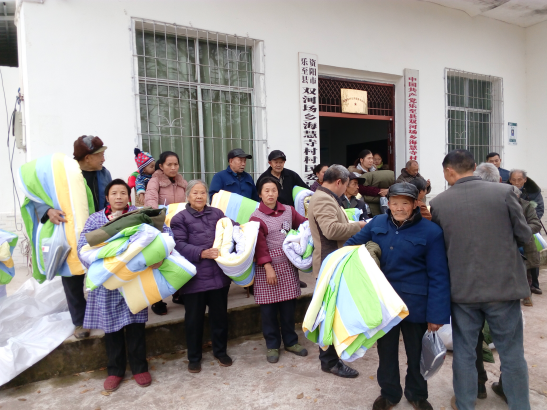 图为:为困难群众发放暖冬物资