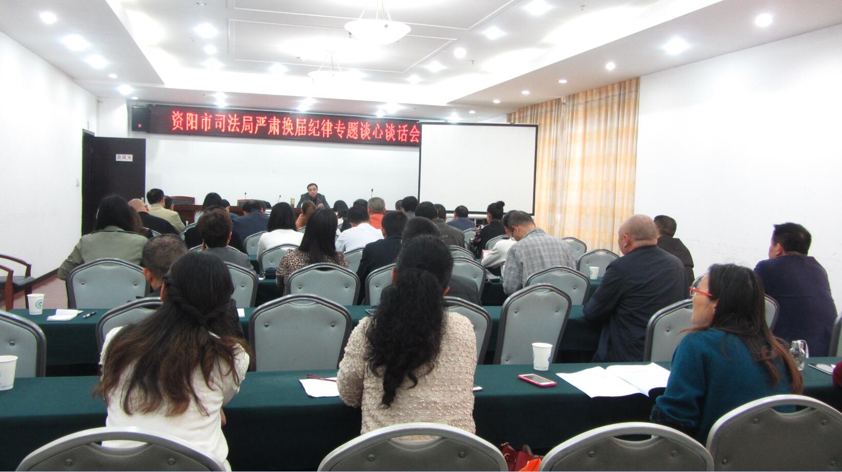 4月8日下午,资阳市司法局组织召开了严肃换届纪律专题谈心谈话会。市司法局全体干部、各县(市、区)司法局局长、纪检书记、驻资监所纪委书记、纪检干部等共计50余人参加了会议。