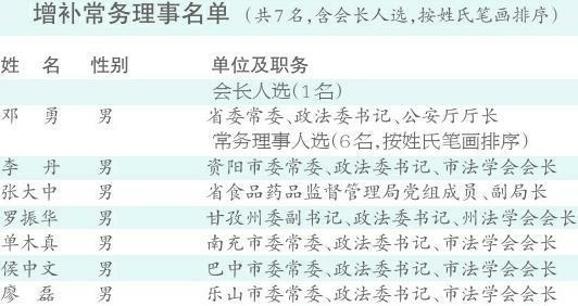 昨(24)日,四川省法学会七届一次常务理事扩大会议在成都召开。省委常委、政法委书记、公安厅厅长邓勇出席会议并作重要讲话,七届省法学会常务理事、部分省内法学界专家学者和省、市实务部门代表参加了会议。会议增补了省法学会部分常务理事,选举邓勇为新任会长。