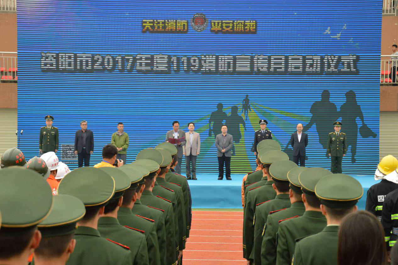 11月9日,是全国第27个“119”消防宣传日,资阳市在四川汽车希望职业学院举行了主题为“关注消防平安你我”的2017年度119消防宣传月启动仪式。市政府副市长、市公安局局长吴宗权出席并宣布宣传月正式启动。市委副秘书长、市依法治市领导小组办公室主任秦后权,市公安局副局长胡德伟,市消防支队队长李代明等市级部门领导出席,市消防系统部分代表、学院部分学生代表参加。仪式由市政府副秘书长周俊主持。