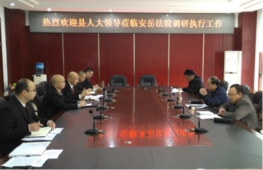 11月8日,安岳县人大法工委主任鲁超一行莅临县法院调研“基本解决执行难”工作情况。