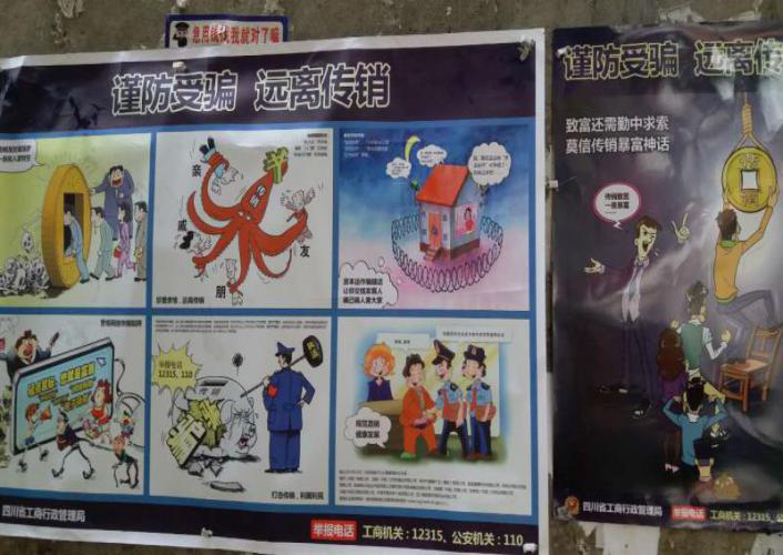 该局采取拉网式的开展排查工作,协同派出所干警,对宾馆、会议室等密集公共聚集点进行检查;设立打击传销宣传点,各工商所在热闹的人口密集点设立打击传销宣传点,现场发放宣传资料、现场向围观群众积极讲解传销的危害;张贴打击传销宣传画,在各乡镇社区居民点、主要街道张贴打击传销宣传画,以生动形象、易懂的贴画让老百姓准确领悟到传销的危害,主动拒绝参与传销,并公布举报电话,鼓励广大民众积极举报。