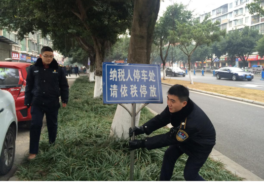 行动中,市地税局门口的绿化带上“纳税停车处请依秩停放”的一块立式招牌引起了记者的注意。地税局门口并没有划专用停车位,这块招牌显然是有人故意放的。“这种招牌平时也遇到过,但是我们不能拆除,城管部门依法查清后会进行清理,”刘警官表示,“这种情况下停车依然要罚款,但是不扣分,一些大型超市门口乱停乱放会罚款,地方不一样性质一样”。